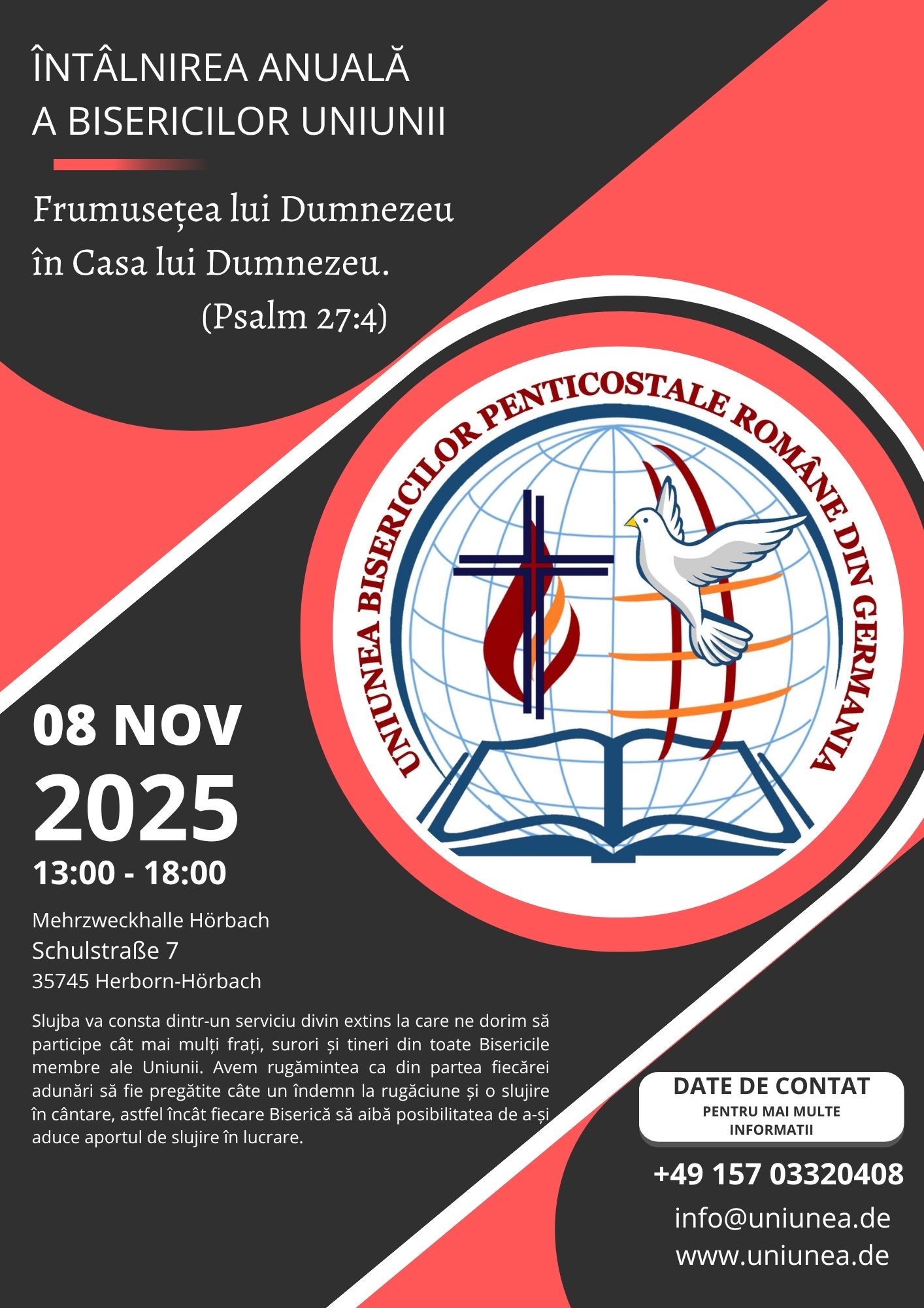Această lucrare va avea loc, ca și până acum, în Mehrzweckhalle Hörbach din Herborn la următoarea
