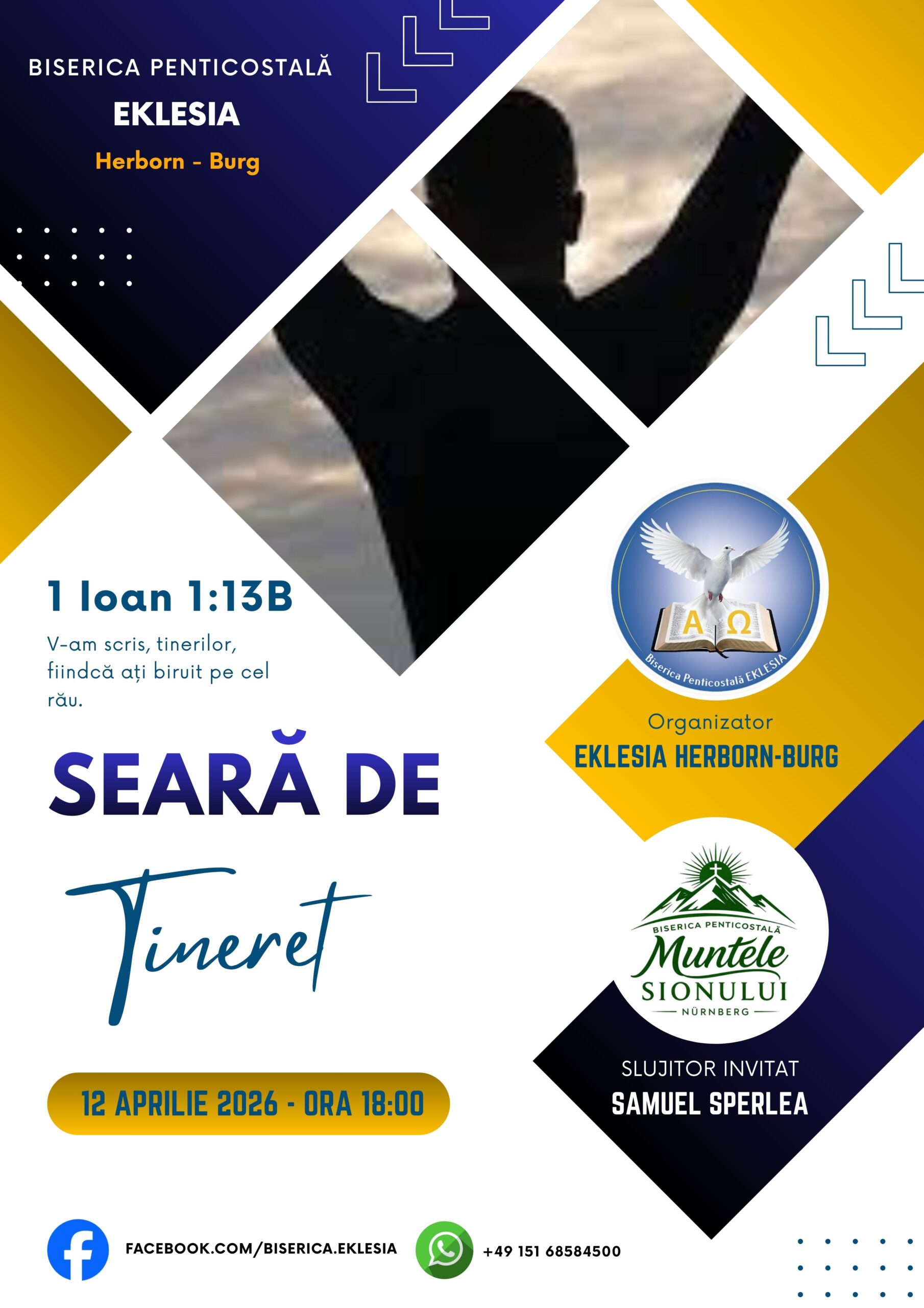 Cu drag invităm în mod special tinerii la o seara de tineret. Invitat va fi fratele slujitor Samuel Sperlea, din biserica Muntele Sionului Nürnberg